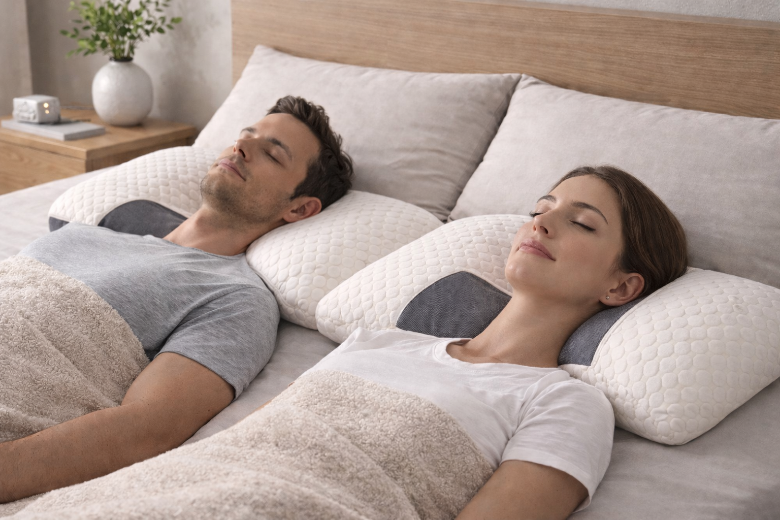 Imagina abrir los ojos después de una noche profunda, sin rigidez en el cuello, sin tensión en los hombros… solo descanso real.
